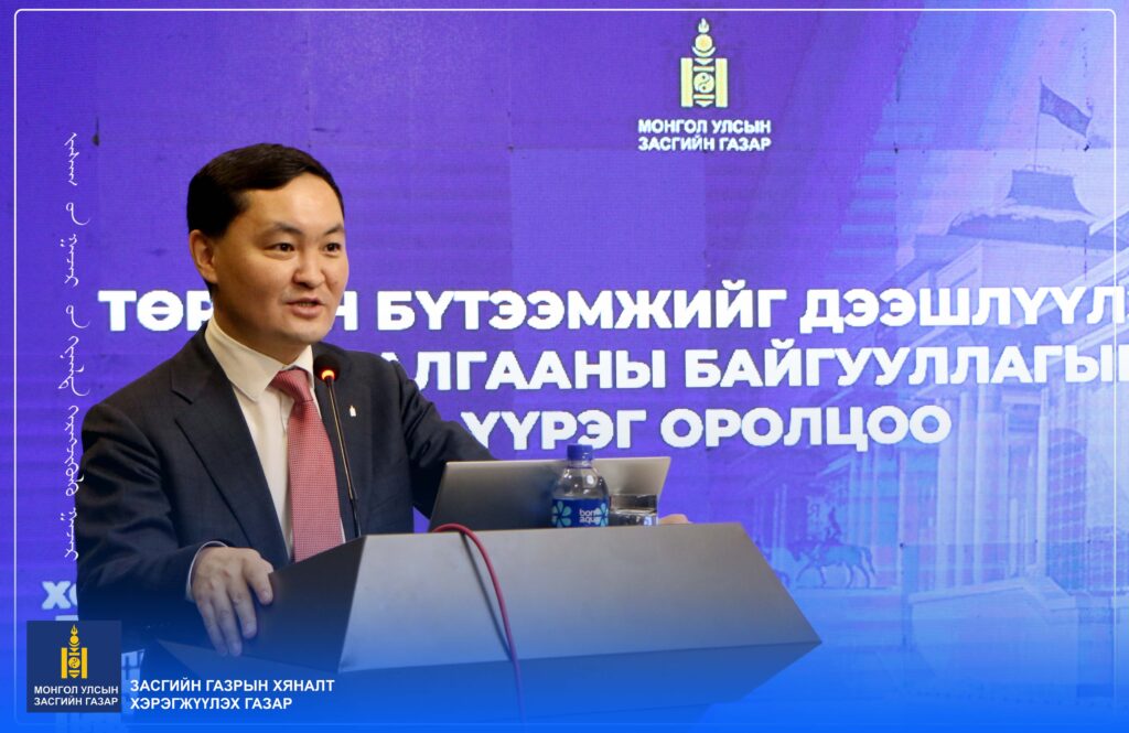 ЗАСГИЙН ГАЗРЫН ХЯНАЛТ ХЭРЭГЖҮҮЛЭХ ГАЗАР “ТӨРИЙН БҮТЭЭМЖИЙГ НЭМЭГДҮҮЛЭХЭД СУДАЛГААНЫ БАЙГУУЛЛАГЫН ҮҮРЭГ ОРОЛЦОО” СЭДЭВТ ХЭЛЭЛЦҮҮЛГИЙГ ЗОХИОН БАЙГУУЛЛАА