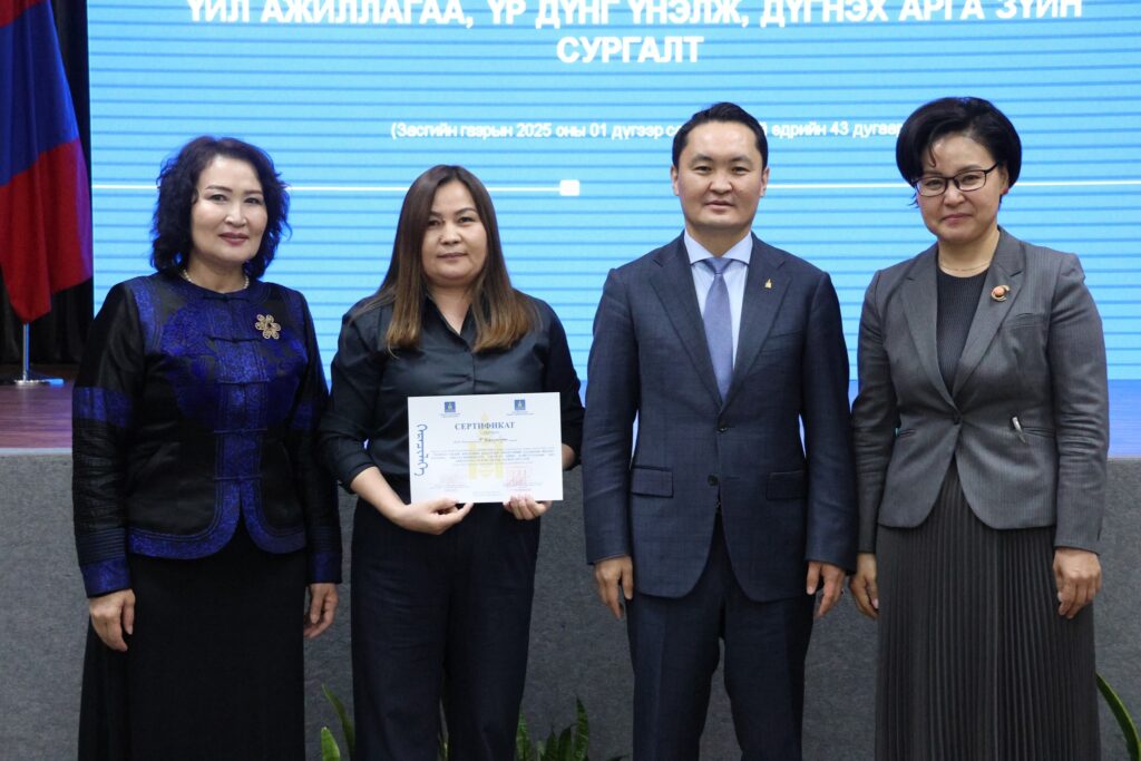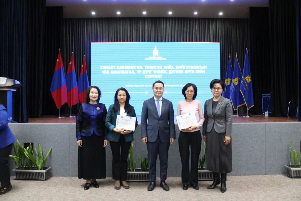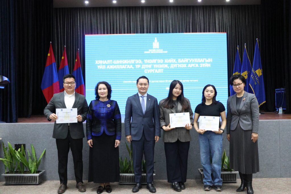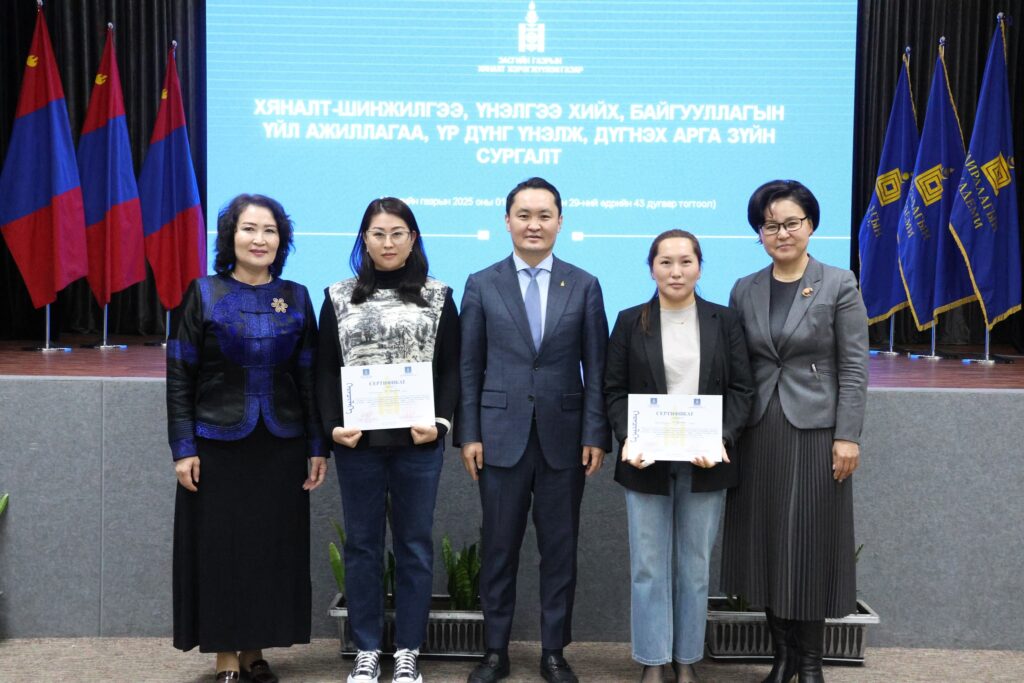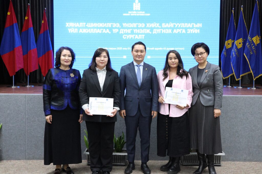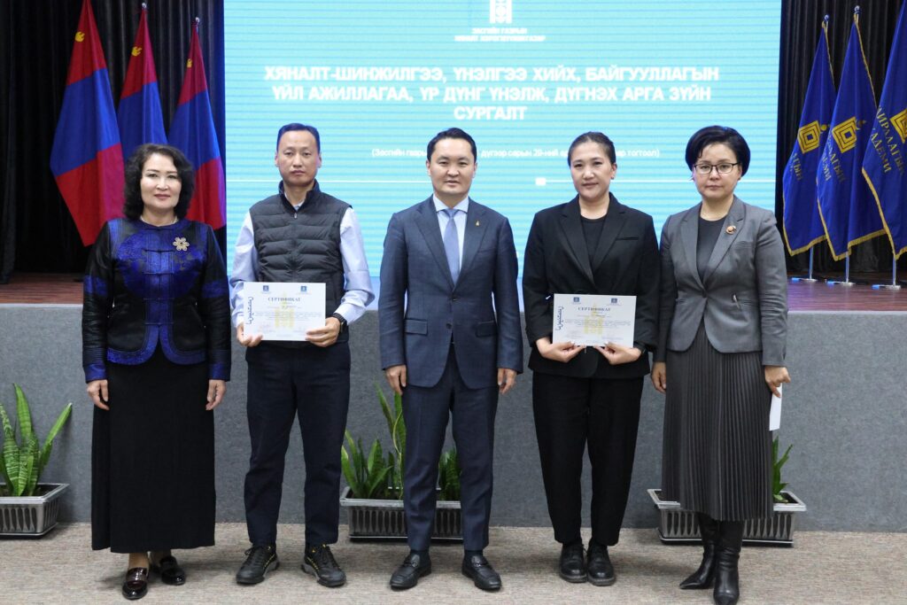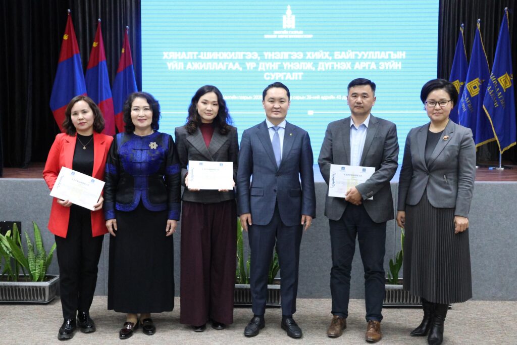 Хяналт, үнэлгээний Үндэсний хороо, Засгийн газрын Хяналт хэрэгжүүлэх газраас сургалтад оролцсон 121 албан хаагчид “Монгол Улсын хөгжлийн бодлогын үнэлгээний чадавхын индекс тогтоох, хяналт-шинжилгээ, үнэлгээний хийх, байгууллагын үйл ажиллагаа, үр дүнг үнэлж, дүгнэх арга зүй” сэдэвт багц сургалтад хамрагдсаныг баталгаажуулж, сертификат олголоо.