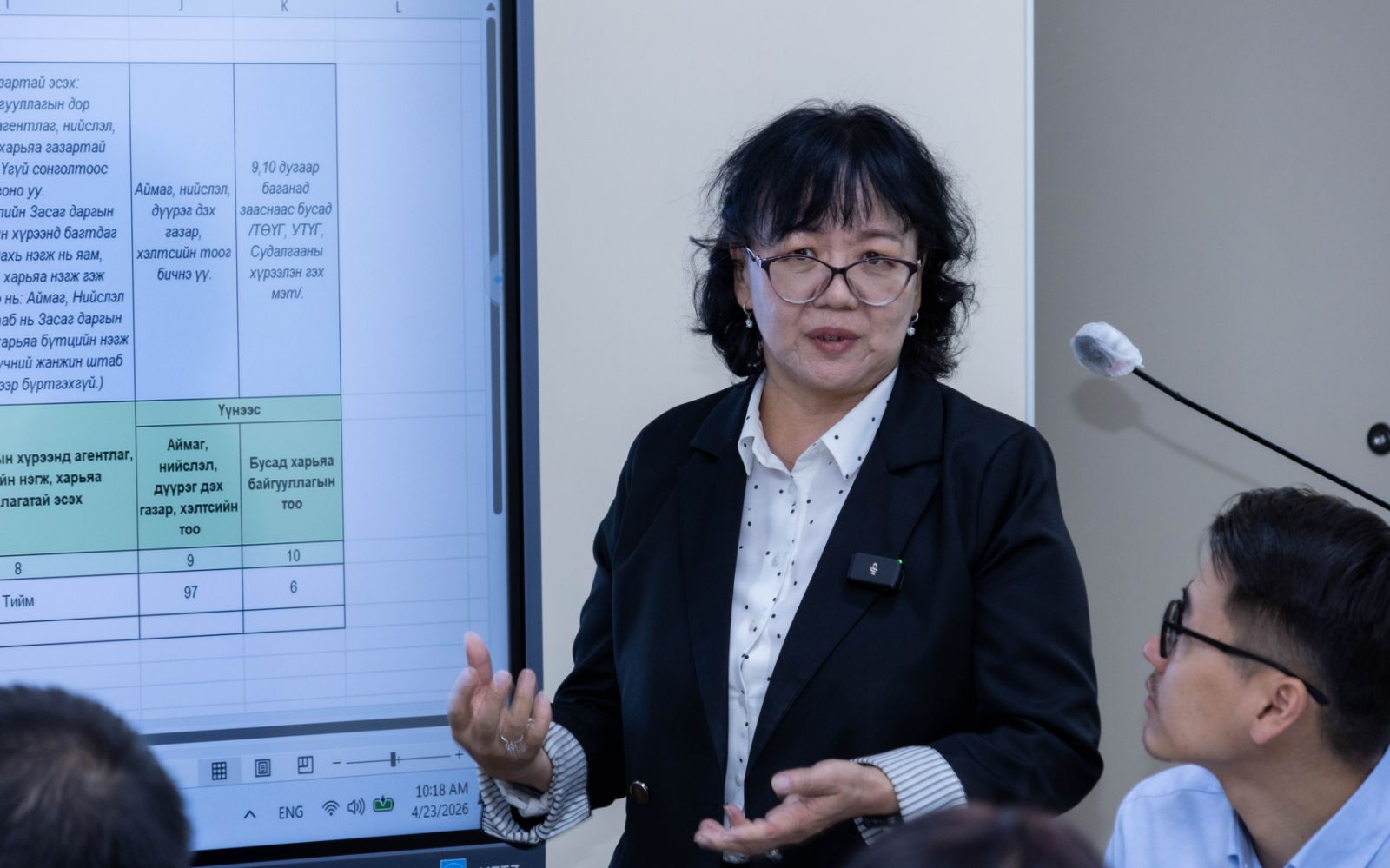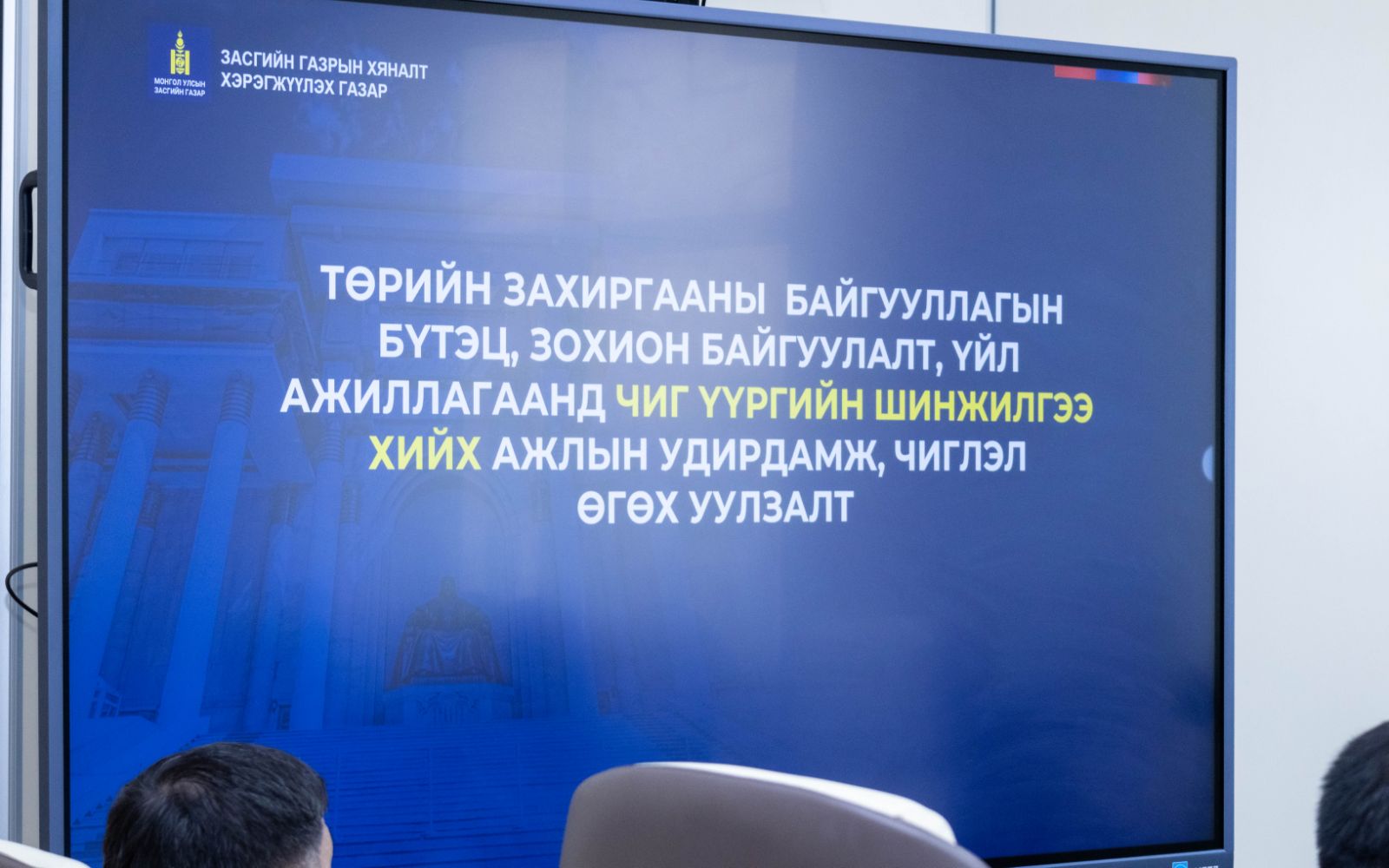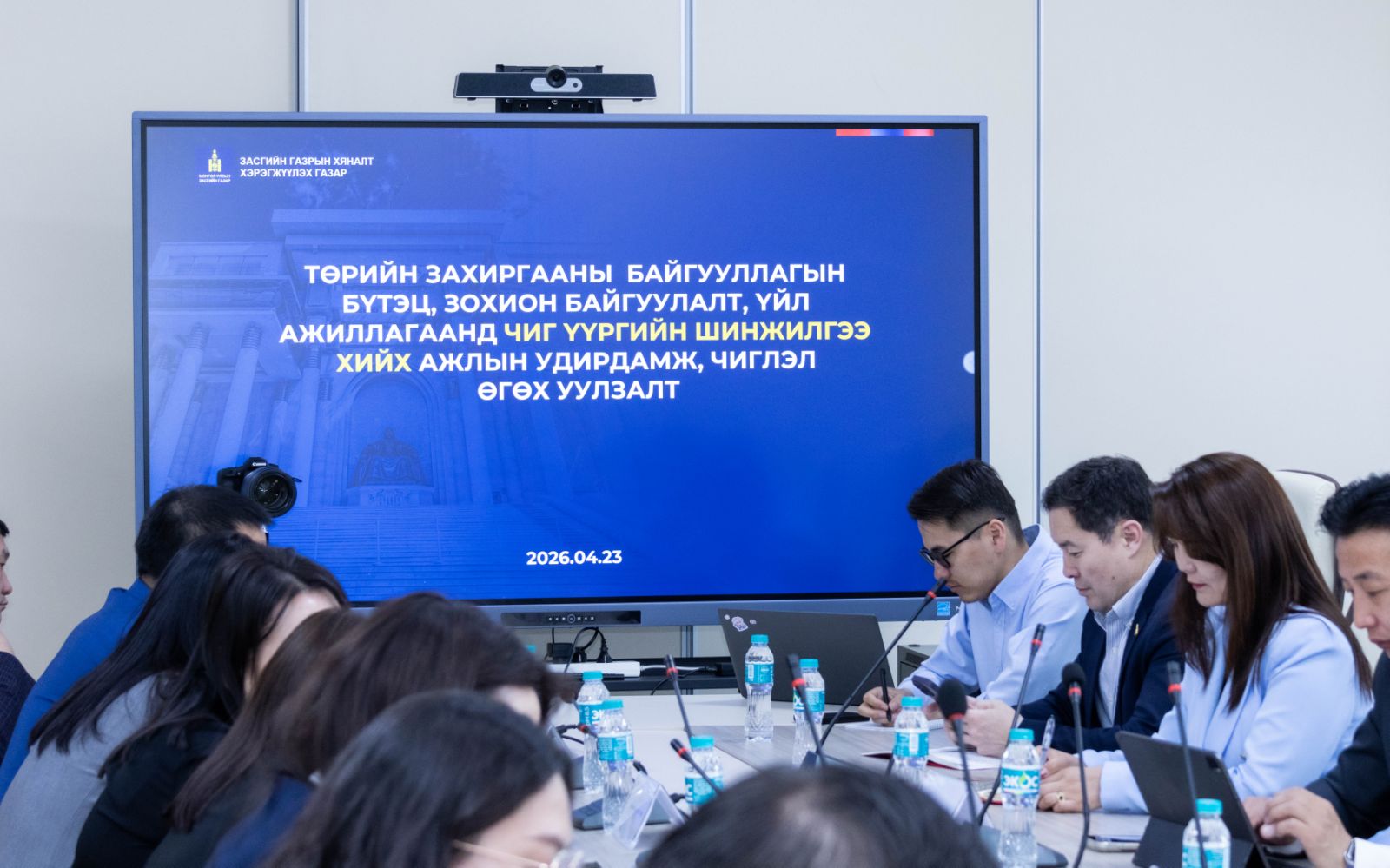 Энэ хүрээнд Засгийн газрын Хяналт хэрэгжүүлэх газраас Ерөнхий сайд, шадар сайдуудын эрхлэх асуудлын хүрээний төрийн захиргааны 9 байгууллагын удирдлага, албан хаагчдад үндсэн чиг үүргийн шинжилгээ хийх маягт, арга зүйг танилцуулах уулзалтыг 2026 оны 04 дүгээр сарын 23-ны өдөр зохион байгууллаа.
